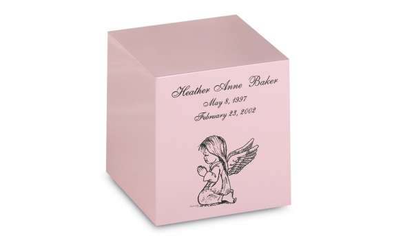 Measures: 3.75" w x 3.75"d x 3.81"h. Constructed of 64 ounce sheet bronze. Designed to hold cremated remains of an infant or child. Personalization available.