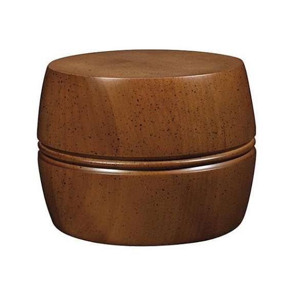 Turned wood with simple design accents. Handcrafted hardwood construction with medium spattered stain and satin finish. Personalization available on top of Urn.